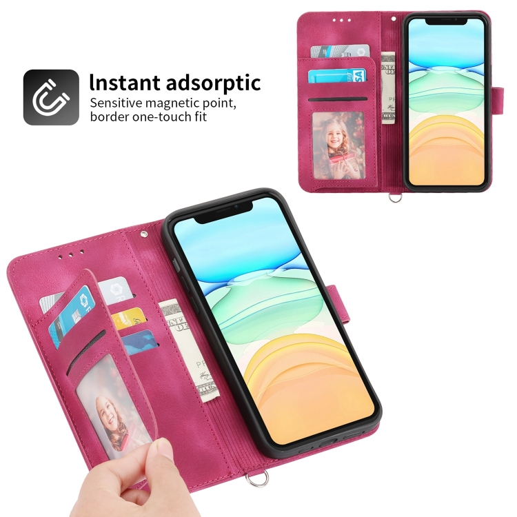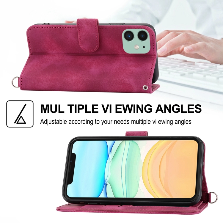 Funda de cuero Skin-Feel Flowers para iPhone 11 con billetera en relieve (Rojo Vino)