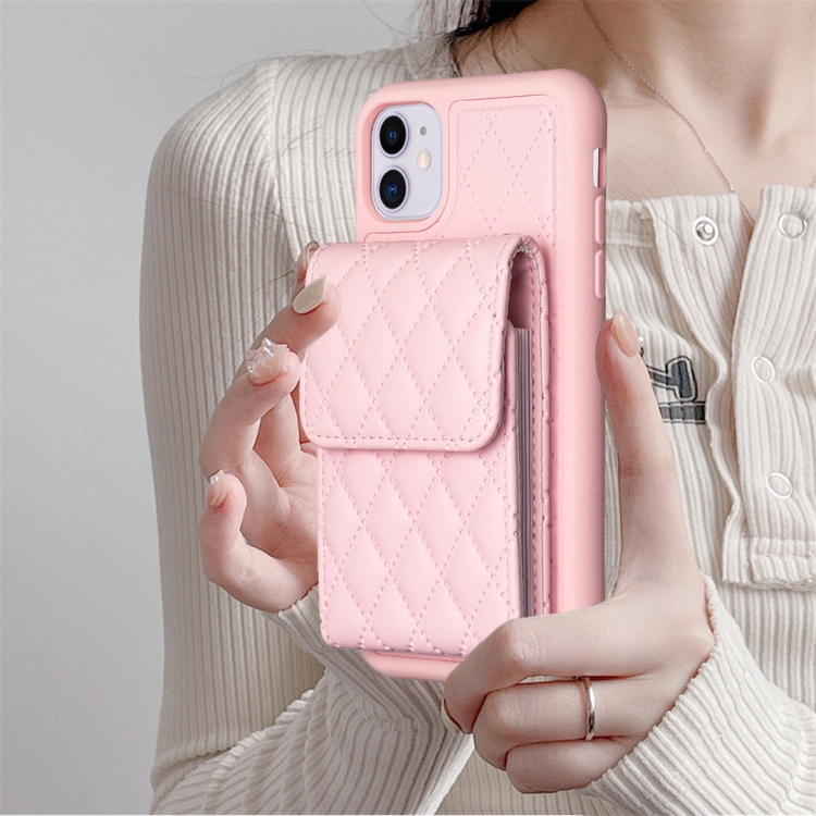 Funda para iPhone 11 Vertical Wallet Rhombic Leather Phone Case (Rosa)