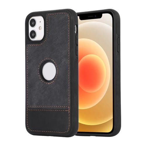 Funda para iPhone 12/12 Pro Empalme Costura Caja de Teléfono de PU con Recorte Hueco (Negro)