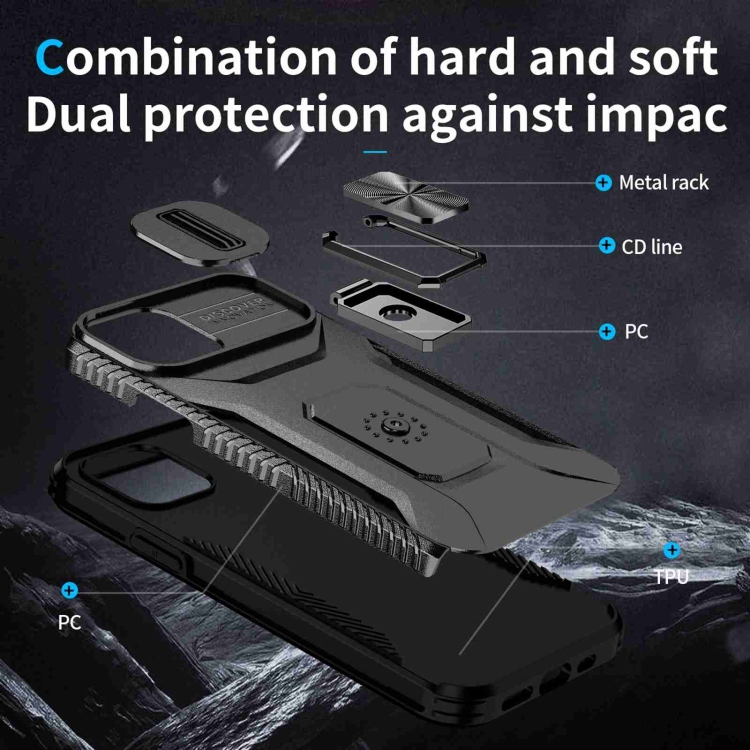 Funda para Teléfono iPhone 12/12 Pro con Soporte Deslizante para Levas (Negro)