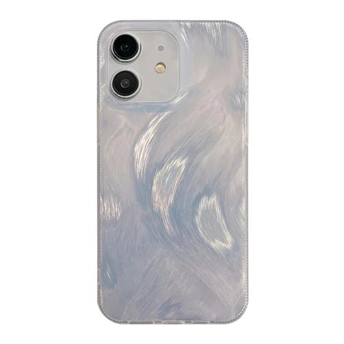 Caja de teléfono híbrida TPU acrílica iPhone 12 con plumas degradadas y sello plata caliente (Plateada)