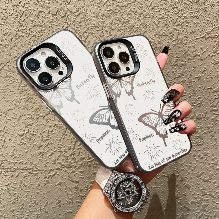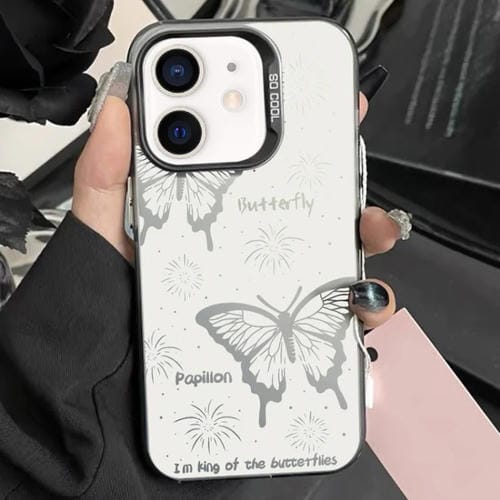 Caja de Teléfono Híbrida TPU PC para iPhone 12 con Pintura Plateada (Mariposa Hueca Negra)