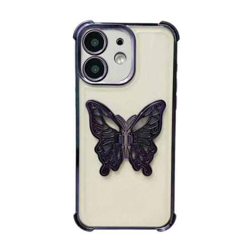 Estuche para Teléfono TPU iPhone 12 con Soporte Mariposa 3D Galvanizado (Púrpura)