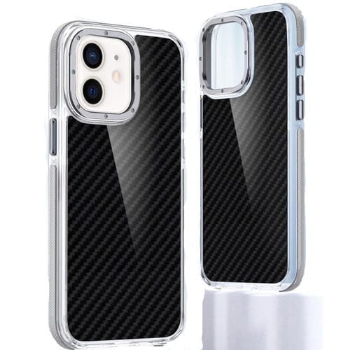 Funda de Teléfono Híbrida TPU Acrílica Fibra de Carbono para iPhone 12 (Gris)