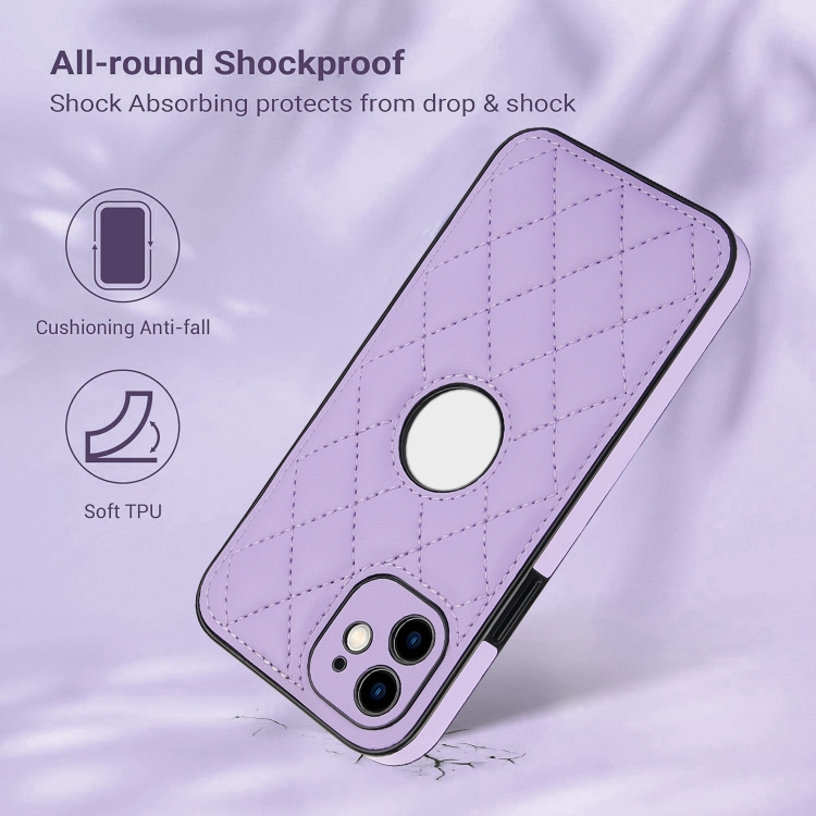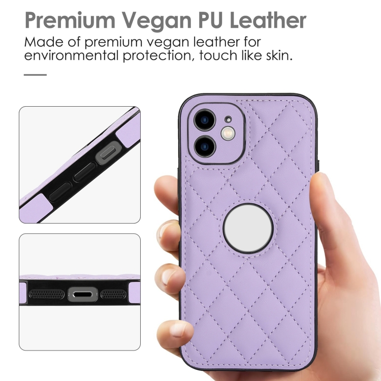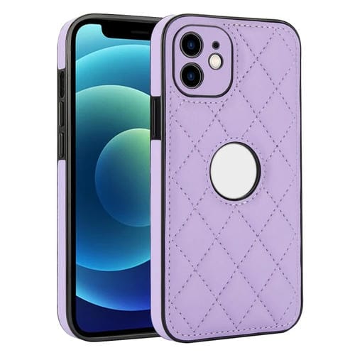Funda para Teléfono iPhone 12 Contraportada de Cuero Rómbico (Púrpura)