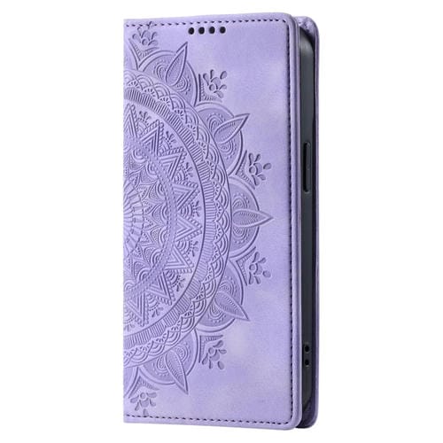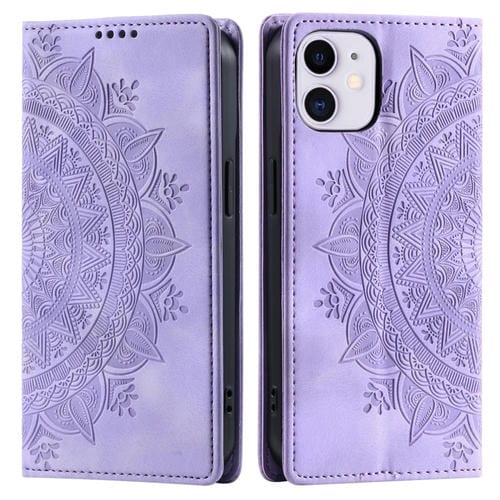 Estuche para Teléfono iPhone 12 Mini Cuero Magnético con Relieve de Tótem (Púrpura)