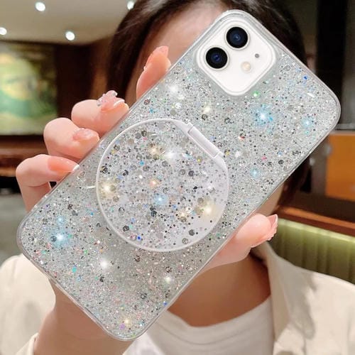 Estuche para Teléfono iPhone 12 Mini TPU Epoxi Soporte Espejo Lentejuelas Estrelladas (Plateado)
