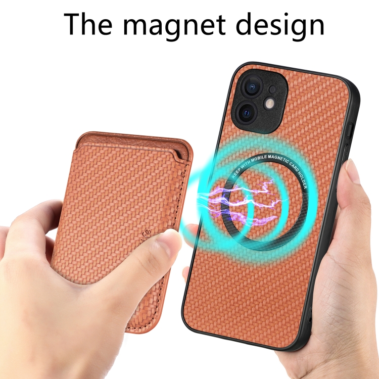 Funda para iPhone 12 Mini Tarjeta de Cuero Fibra de Carbono Magsafe Magnética (Marrón)
