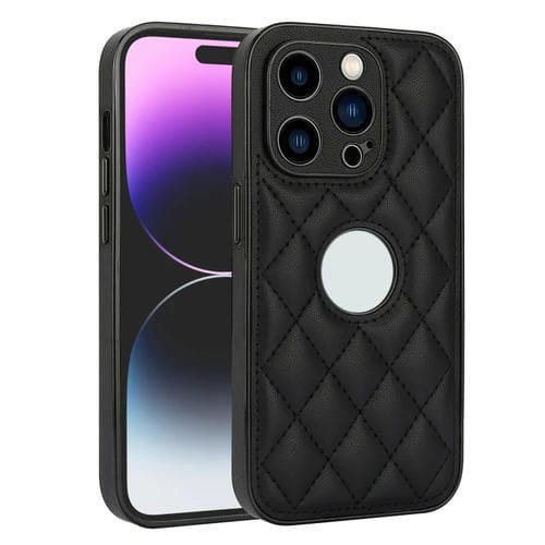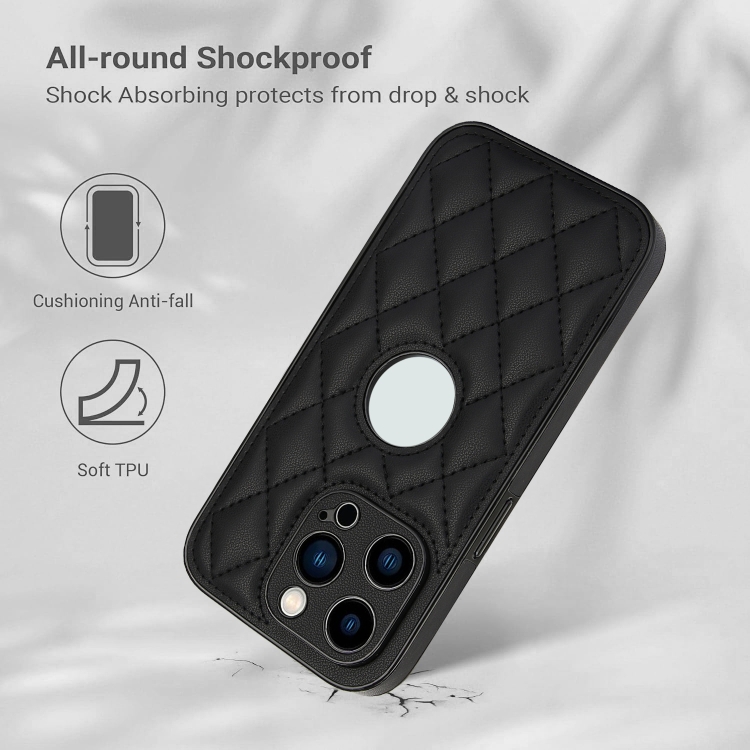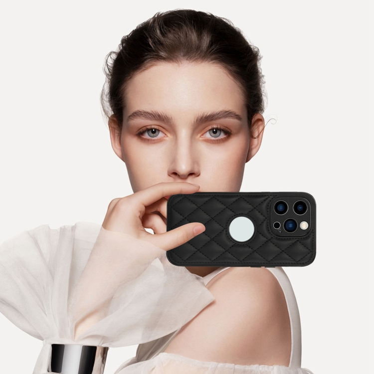 Funda para Teléfono iPhone 12 Pro Contraportada de Cuero Rómbico (Negro)