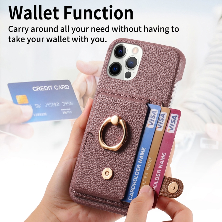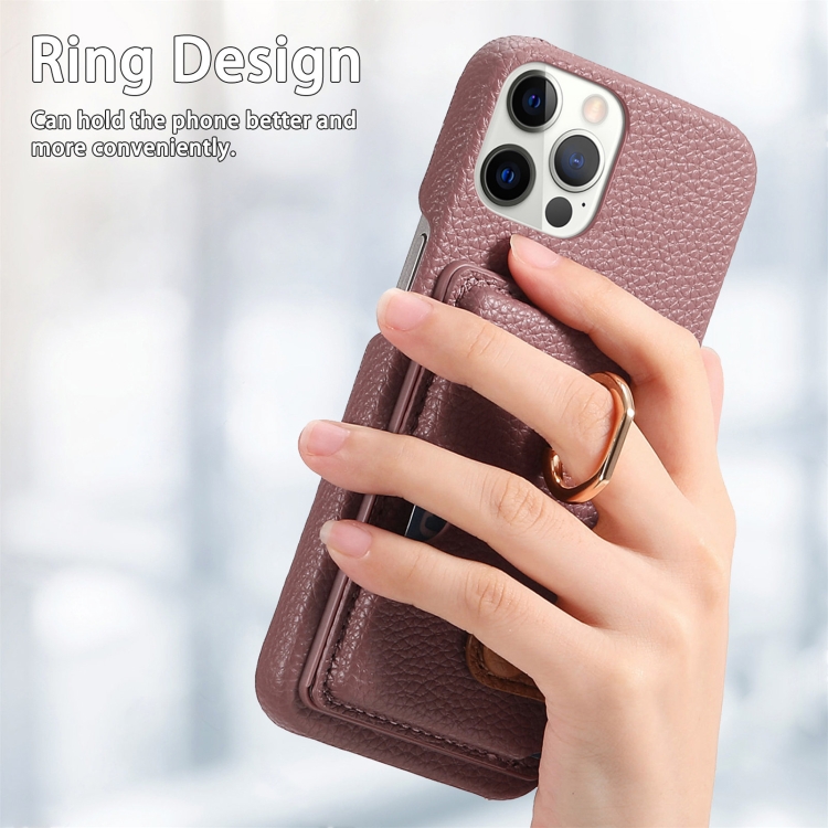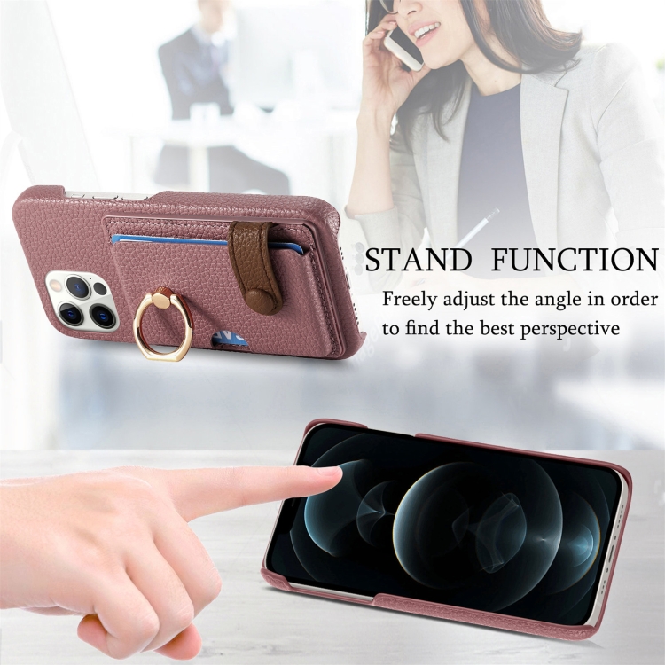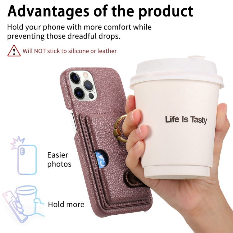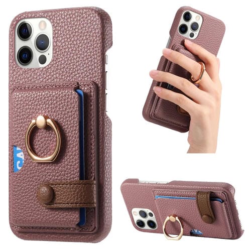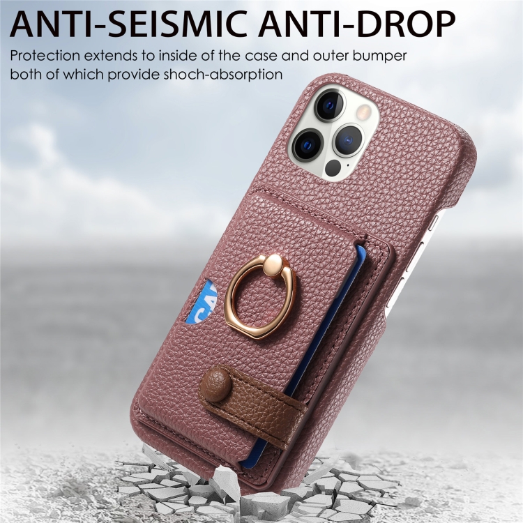 Funda para Teléfono iPhone 12 Pro Parte Posterior Tarjeta Anillo Borde Cuero Litchi (Albaricoque Azufaifa)