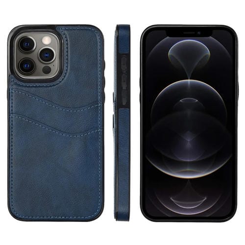 Funda para Teléfono iPhone 12 Pro con Ranuras para Tarjetas Piel de Cuero Litchi (Azul)