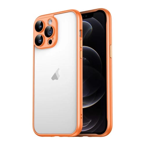 Marco de Borde Puro para iPhone 12 Pro Macaron PC con Película de Vidrio para Lentes (Naranja)