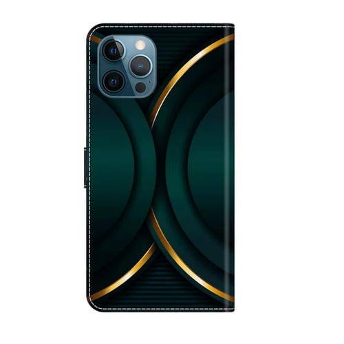 Funda Protectora de Cuero para iPhone 12 Pro Max y 13 Pro Max Crystal 3D a Prueba de Golpes (Contorno Dorado)