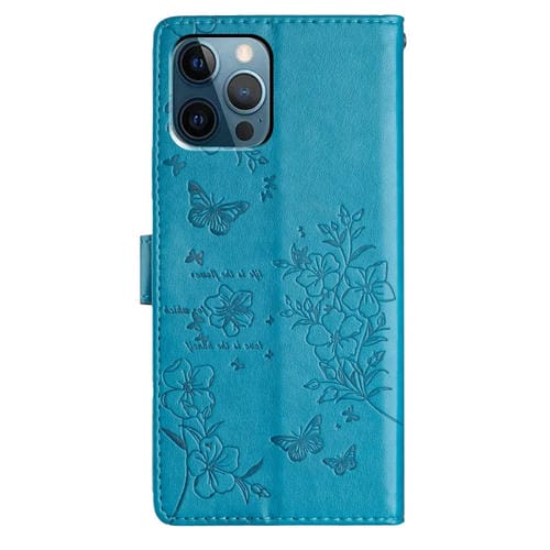 Funda de Cuero para iPhone 12 Pro Max Butterfly Love Flower En Relieve (Azul)