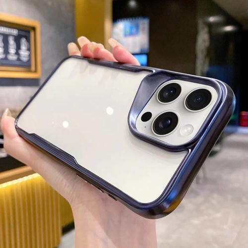 Caja de Teléfono Híbrida para iPhone 12 Pro Max con Marco de TPU Galvanizado (Azul)