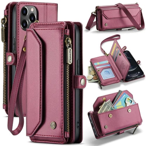Funda para iPhone 12 Pro Max Caseme C36 Cartera con Ranuras para Tarjetas y Cremallera Rfid (Rojo Vino)