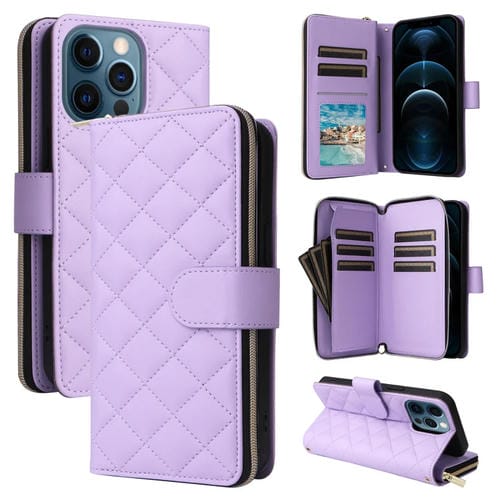 Estuche para Teléfono iPhone 12 Pro Max Crossbody Cuero Hebilla Torre Cremallera Rómbica Cordón (Púrpura)