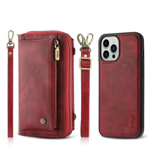 Funda para iPhone 12 Pro Max Crossbody de Cuero con Billetera y Cremallera Multifuncional (Rojo)
