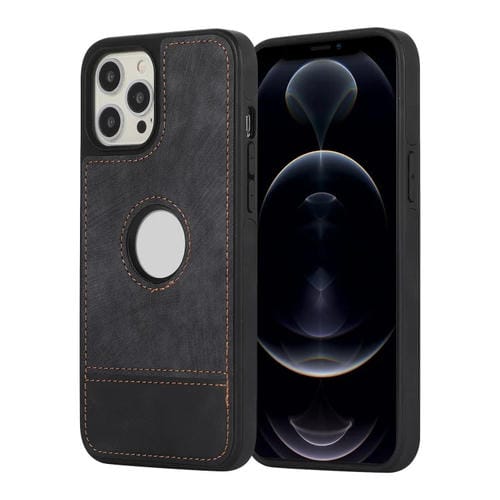 Funda para iPhone 12 Pro Max Empalme Costura Caja de Teléfono de PU con Recorte (Negro)