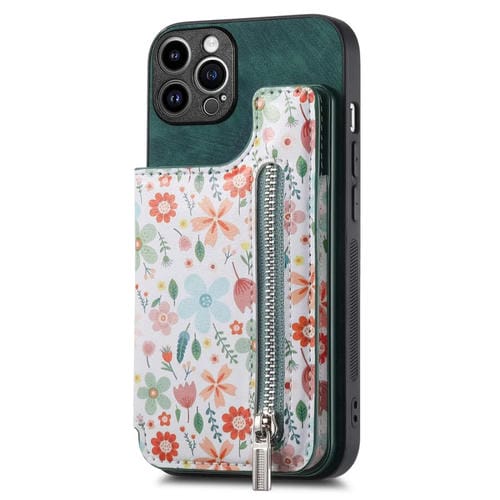 Estuche para Teléfono iPhone 12 Pro Max con Billetera y Cremallera Pintada Retro (Verde)
