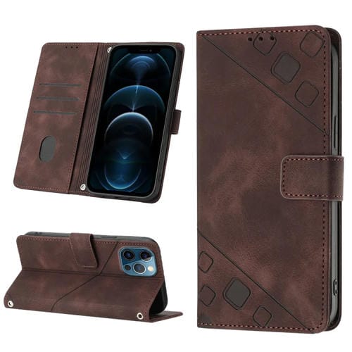 Estuche para Teléfono iPhone 12 Pro Max Cuero En Relieve con Tacto de Piel (Marrón)