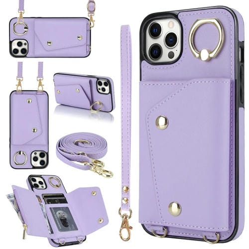 Funda para iPhone 12 Pro Max con Cremallera y Doble Cordón (Púrpura)