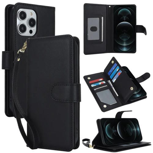 Funda para Teléfono iPhone 12 Pro Max Cuero Rfid con Billetera MultiTarjeta (Negro)
