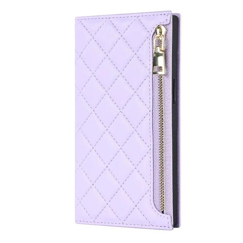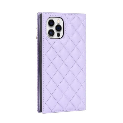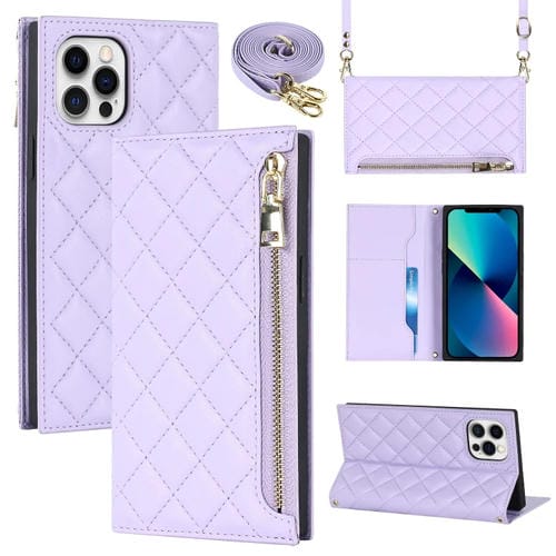 Funda de Cuero con Cremallera para Teléfono iPhone 12 Pro Max Grid Texture (Púrpura)