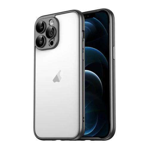 Funda para iPhone 12 Pro Max Macaron PC Marco de Borde con Película de Vidrio para Lentes (Negro)