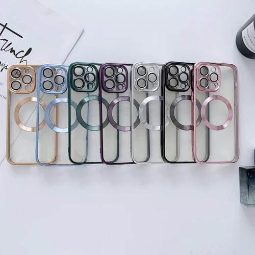 Caja de Teléfono TPU Magnética Galvanizada para iPhone 12 Pro Max Magsafe con Filtro de Polvo y Película de Lente (Rosa)
