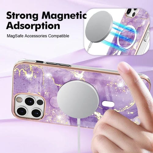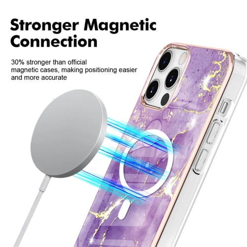 Funda para iPhone 12 Pro Max Marble Pattern Dual-Side Imd Magsafe TPU (Púrpura)
