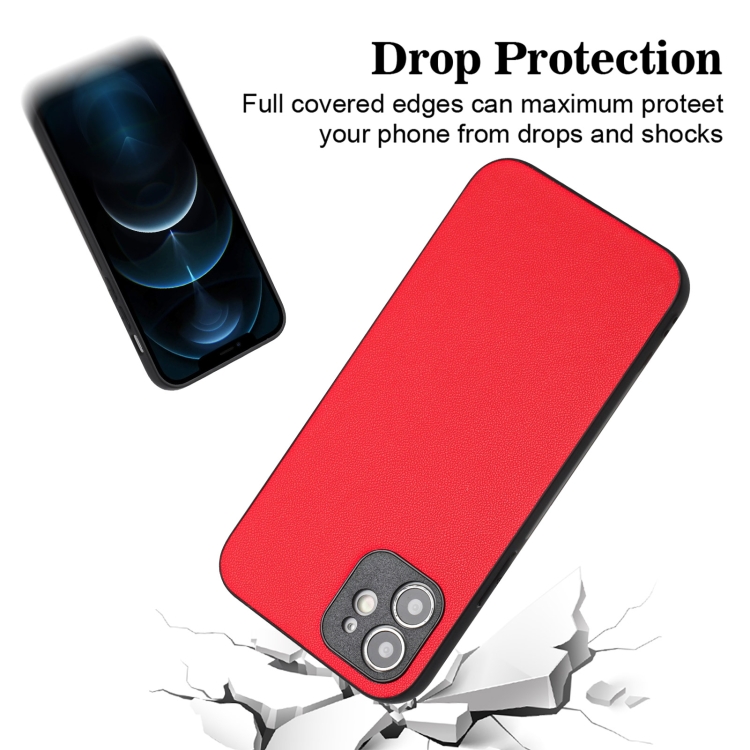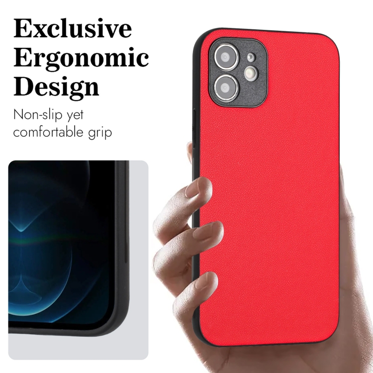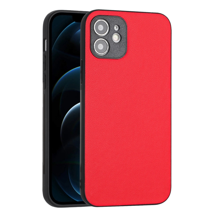 Funda para teléfono iPhone 12 R20 con patrón de cuero (Rojo)