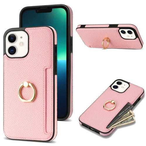 Funda Trasera para iPhone 12 Ring Card Litchi de Cuero para Teléfono (Rosa)