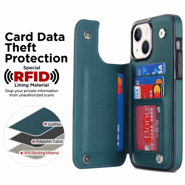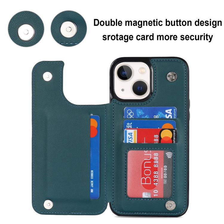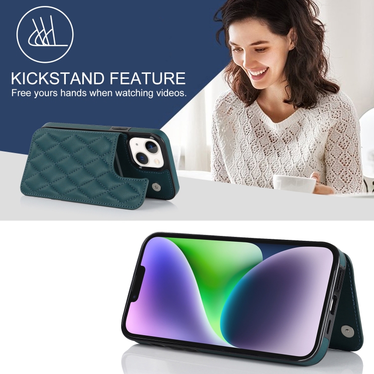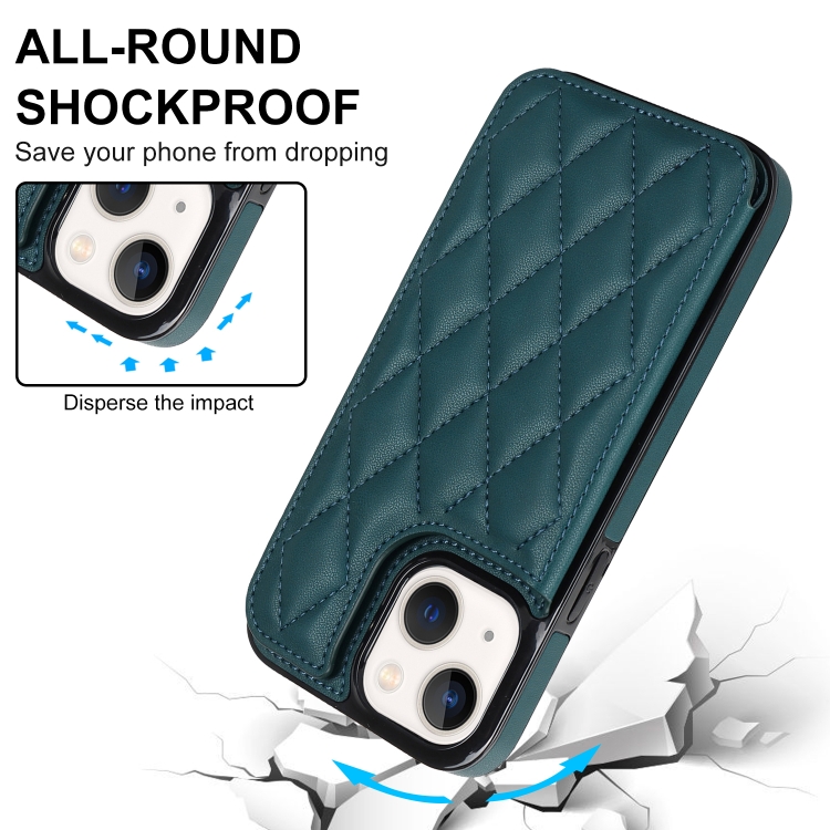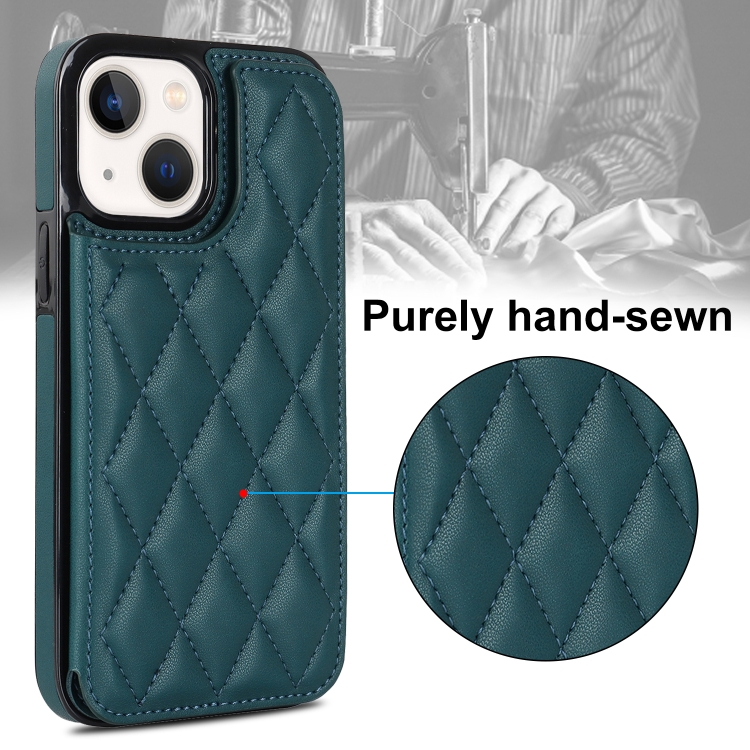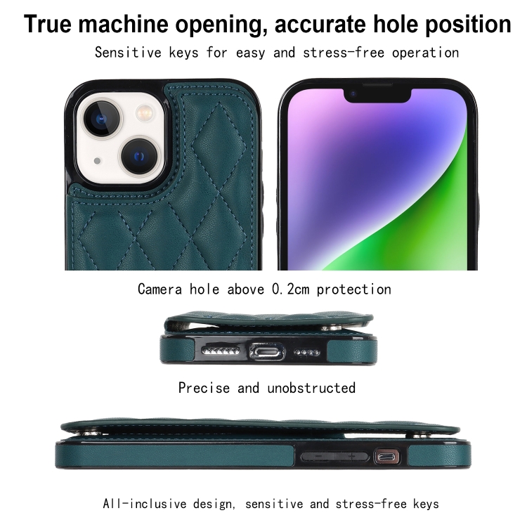 Funda para Teléfono iPhone 13 Doble Hebilla Rombico PU Cuero (Verde)