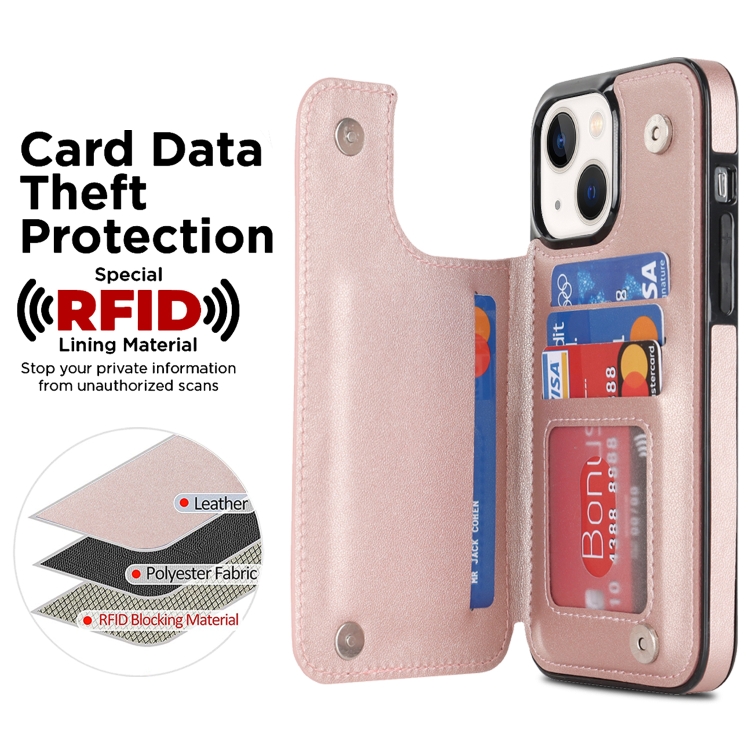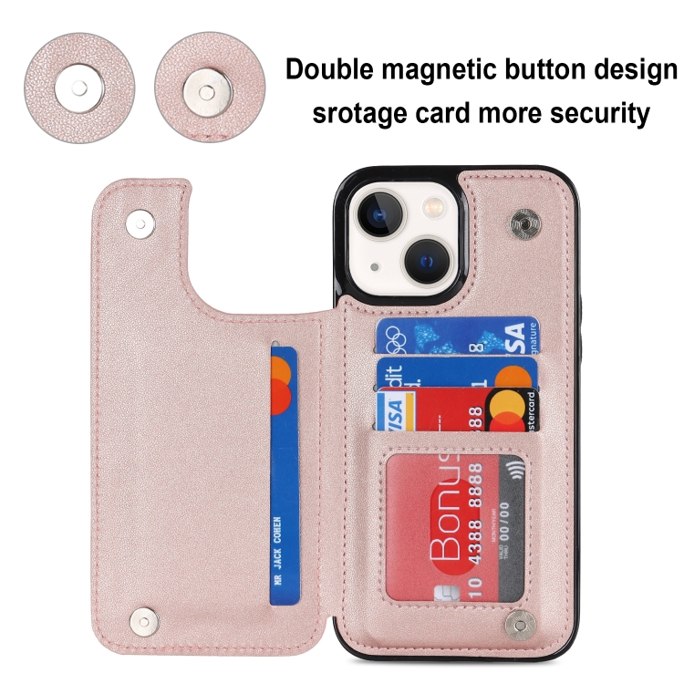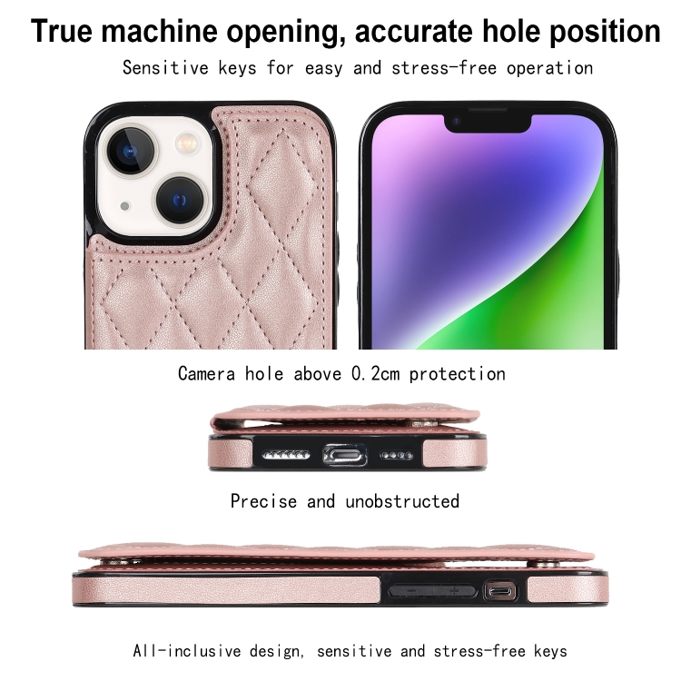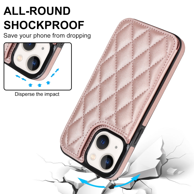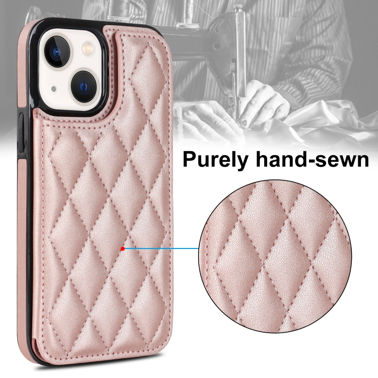 Funda de Teléfono iPhone 13 Cuero Pu Rombal Doble Hebilla (Oro Rosa)