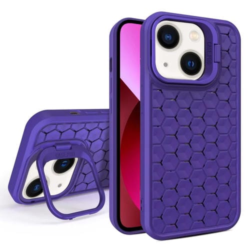 Funda Magnética para Teléfono iPhone 13 con Soporte para Lente Radiante en Forma de Panal (Púrpura)