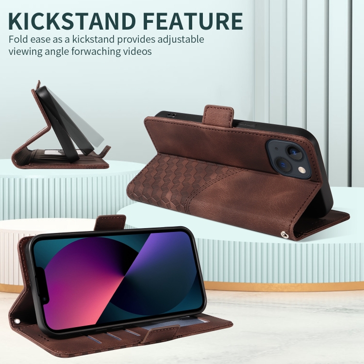 Funda para Teléfono iPhone 13 Cuero Estrellado Rombo en Relieve (Marrón)