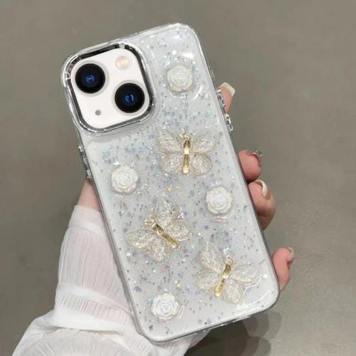 Funda para Teléfono iPhone 13 TPU Glitter 3D Butterfly (Dorado)
