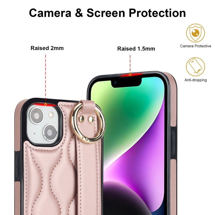Funda para iPhone 13 Mini Antideslizante con Anillo Cobertura Total y Pulsera (Oro Rosa)