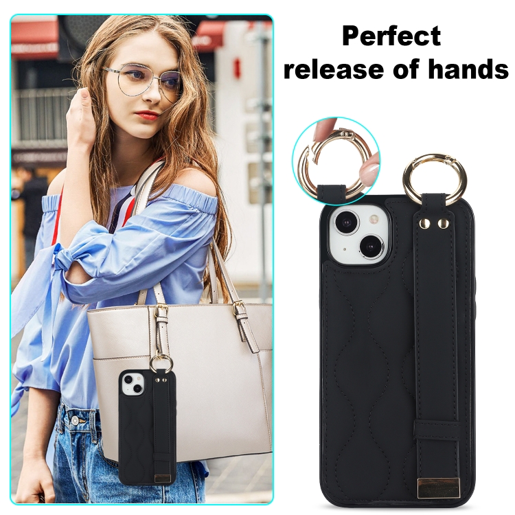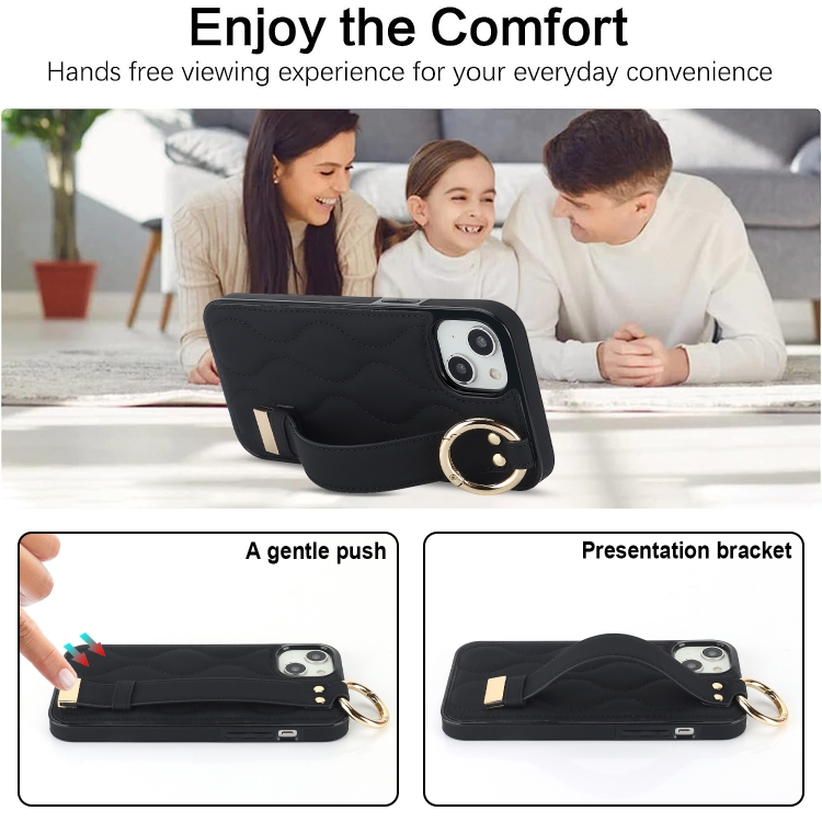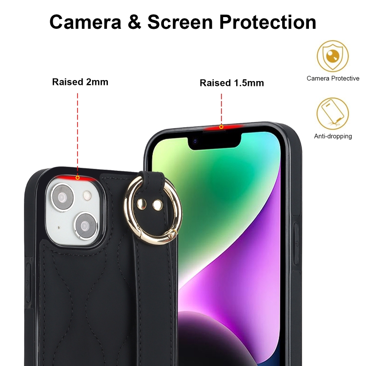 Funda para iPhone 13 Mini Antideslizante de PU con Anillo y Muñequera (Negro)