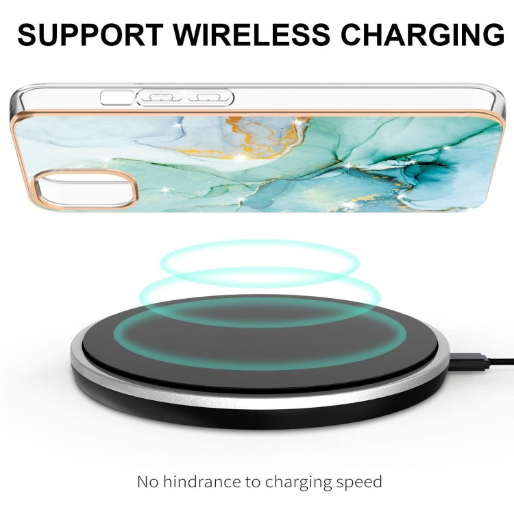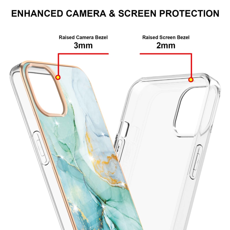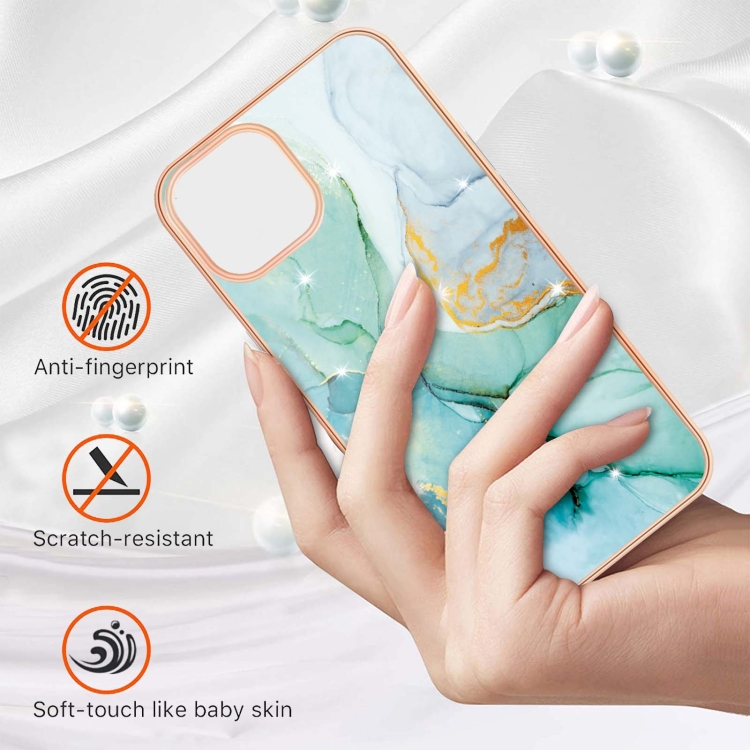 Estuche para iPhone 13 Mini Galvanoplastia Patrón de Mármol TPU Doble Cara (Verde)