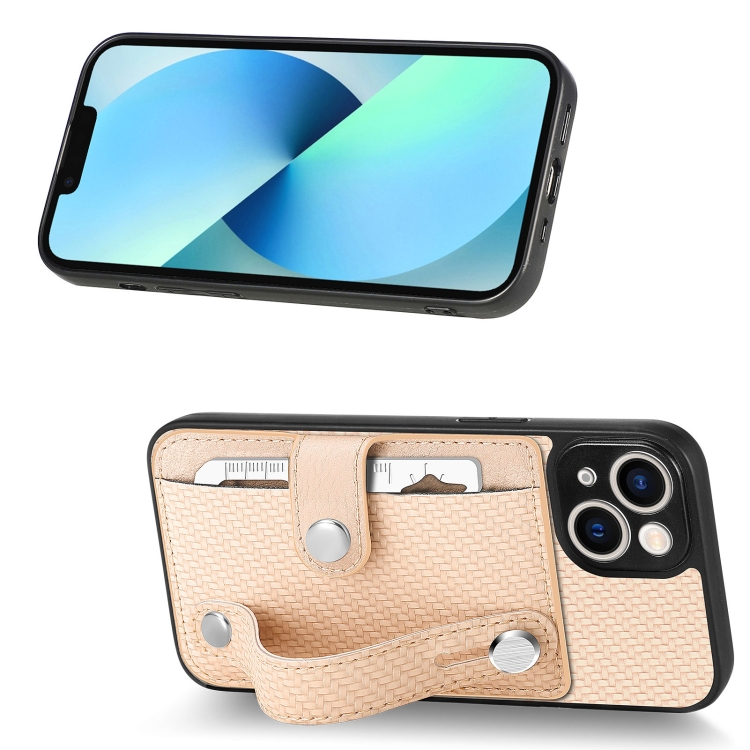 Funda para iPhone 13 Mini Muñequera Kickstand Card Wallet Back Cover con Tool Knife (Khaki)