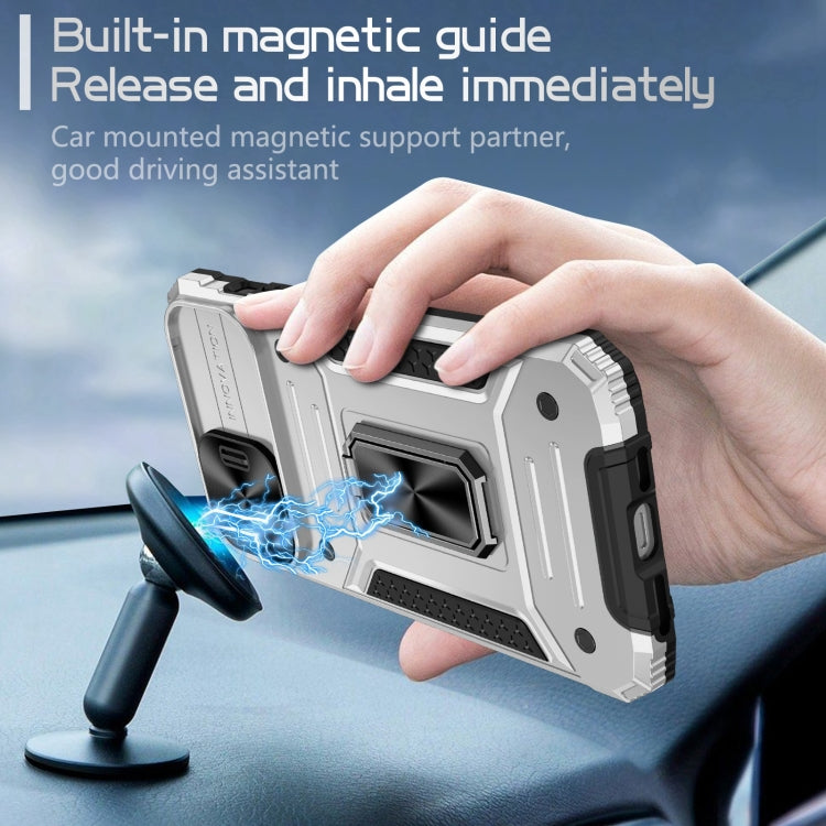 Funda para iPhone 13 Pro Camshield Robot TPU Hybrid PC Phone Case (Plata)