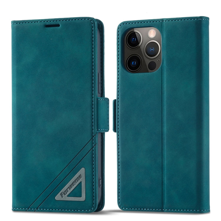 Funda de Cuero FoRWenw para iPhone 13 Pro con Hebilla de Doble Cara (Cian Oscuro)