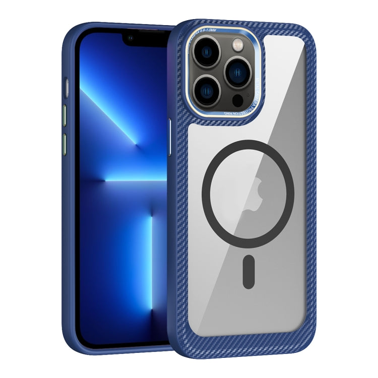 Funda para iPhone 13 Pro Magsafe Fibra de Carbono Panel Trasero Transparente (Azul)