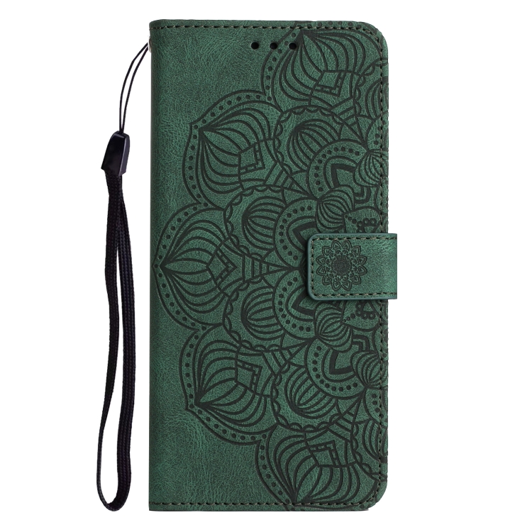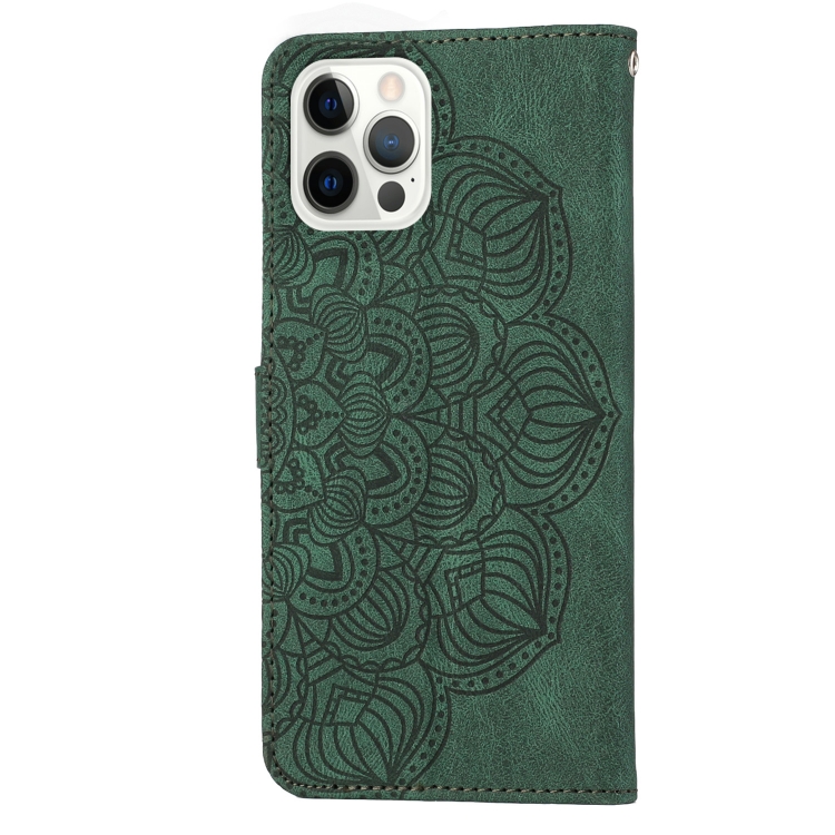 Funda de Cuero para iPhone 13 Pro Mandala con Tapa En Relieve (Verde)