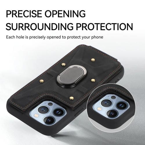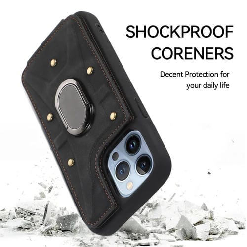 Funda para iPhone 13 Pro Max Armor Ring Wallet Back Cover Phone Case (Negro)