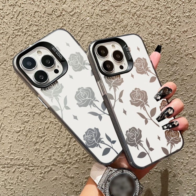 Caja de Teléfono Híbrida TPU para PC iPhone 13 Pro Max con Pintura Plateada (Negro Rosa Hueco)