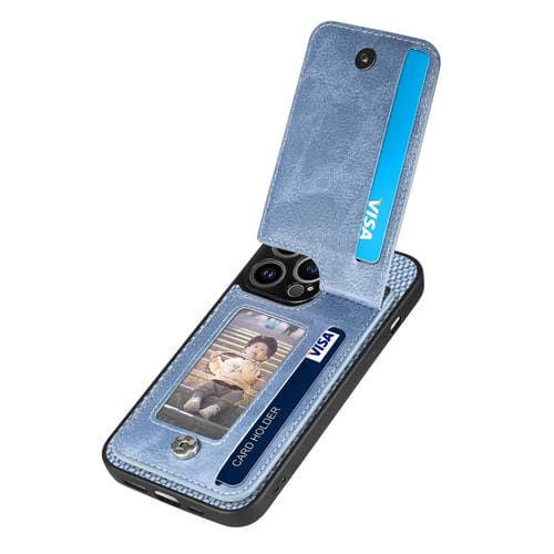 Funda para Teléfono iPhone 13 Pro Max Carbon Fiber Vertical Flip con Cremallera (Azul)