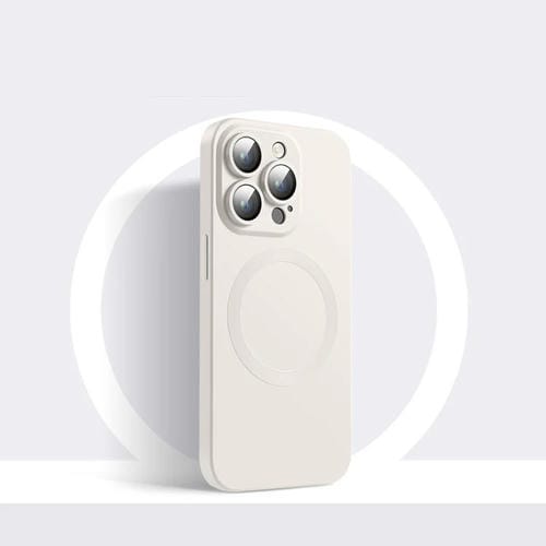 Funda para iPhone 13 Pro Max Cd Texture Magsafe Liquid Silicone Blanco